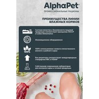 Здоровый и активный питомец – главная задача каждого хозяина. Команда AlphaPet создает и производит полезные корма высшей категории качества Holistiс, давая возможность каждому владельцу быть уверенным в правильном выборе кормления для своего животного. AlphaPet WOW - линейка качественного питания по доступной цене для животных, владельцы которых хотят быть уверены в выборе лучшего качества рациона по разумной цене. Максимально открытый и понятный состав кормов, приготовленных по инновационной технологии из свежего мяса и с содержанием более чем 90% мясного белка! Линейка влажных кормов AlphaPet так же содержит:-Ингредиенты качества Human Graid-Уникальный комплекс AlphaPetBio -Рис - для чувствительного пищеварения*Не содержит ГМО искусственных красителей, ароматизаторов, консервантов, пшеницу, кукурузу и глютен.