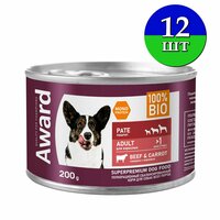 Влажный корм AWARD для взрослых собак паштет из говядины с морковью, 200 г х 12 шт: сравнение цен, характеристики, фото, актуальное наличие и цены.