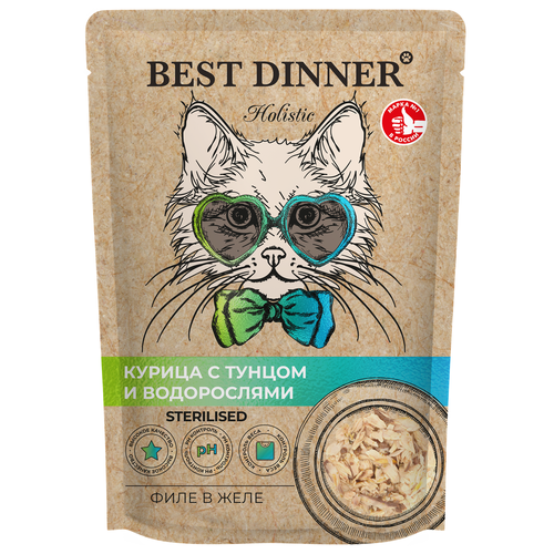 Купить Влажный корм BEST DINNER Holistic для стерилизованных кошек, курица и тунец с водорослями в желе 12шт х 70 г с доставкой по всей России. Влажный корм BEST DINNER Holistic для стерилизованных кошек, курица и тунец с водорослями в желе 12шт х 70 г: сравнение цен, характеристики, фото, актуальное наличие и цены.