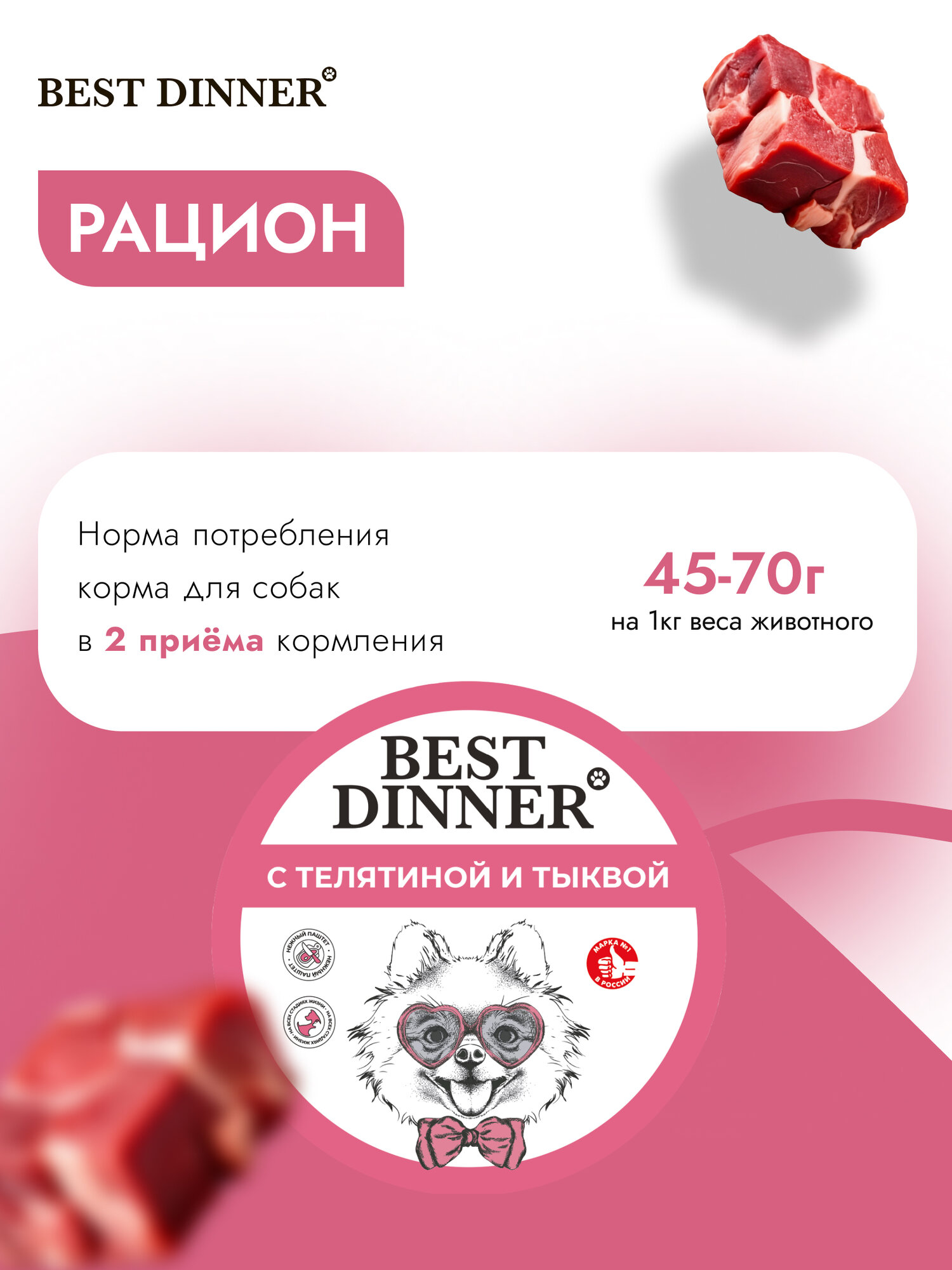 Влажный корм Best Dinner Super Premium для собак мелких пород Телятиной и тыквой (12шт х 100гр): сравнение цен, характеристики, фото, актуальное наличие и цены.