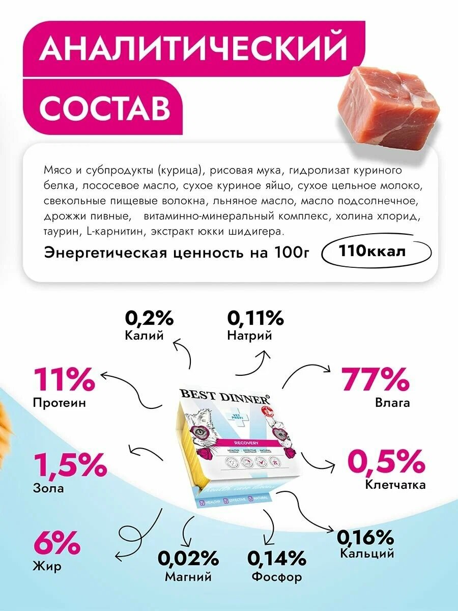 Влажный корм Best Dinner Vet Profi Recovery для кошек и собак при послеоперационном восстановлении 14 шт х 100г: сравнение цен, характеристики, фото, актуальное наличие и цены.
