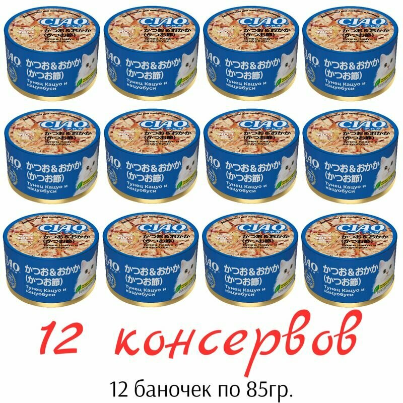 Купить Влажный корм CIAO can для кошек Тунец Кацуо и кацуобуси, консервы 12шт по 85гр с доставкой по всей России. Влажный корм CIAO can для кошек Тунец Кацуо и кацуобуси, консервы 12шт по 85гр: сравнение цен, характеристики, фото, актуальное наличие и цены.