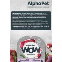 Здоровый и активный питомец – главная задача каждого хозяина. Команда AlphaPet® создает и производит полезные корма высшей категории качества Holistiс, давая возможность каждому владельцу быть уверенным в правильном выборе кормления для своего животного. AlphaPet® WOW - линейка качественного питания по доступной цене для животных, владельцы которых хотят быть уверены в выборе лучшего качества рациона по разумной цене. Максимально открытый и понятный состав кормов, приготовленных по инновационной технологии из свежего мяса и с содержанием более чем 90% мясного белка! Линейка влажных кормов AlphaPet так же содержит: Ингредиенты качества Human Graid Уникальный комплекс AlphaPetBio Рис - для чувствительного пищеварения *Не содержит ГМО искусственных красителей, ароматизаторов, консервантов, пшеницу, кукурузу и глютен.