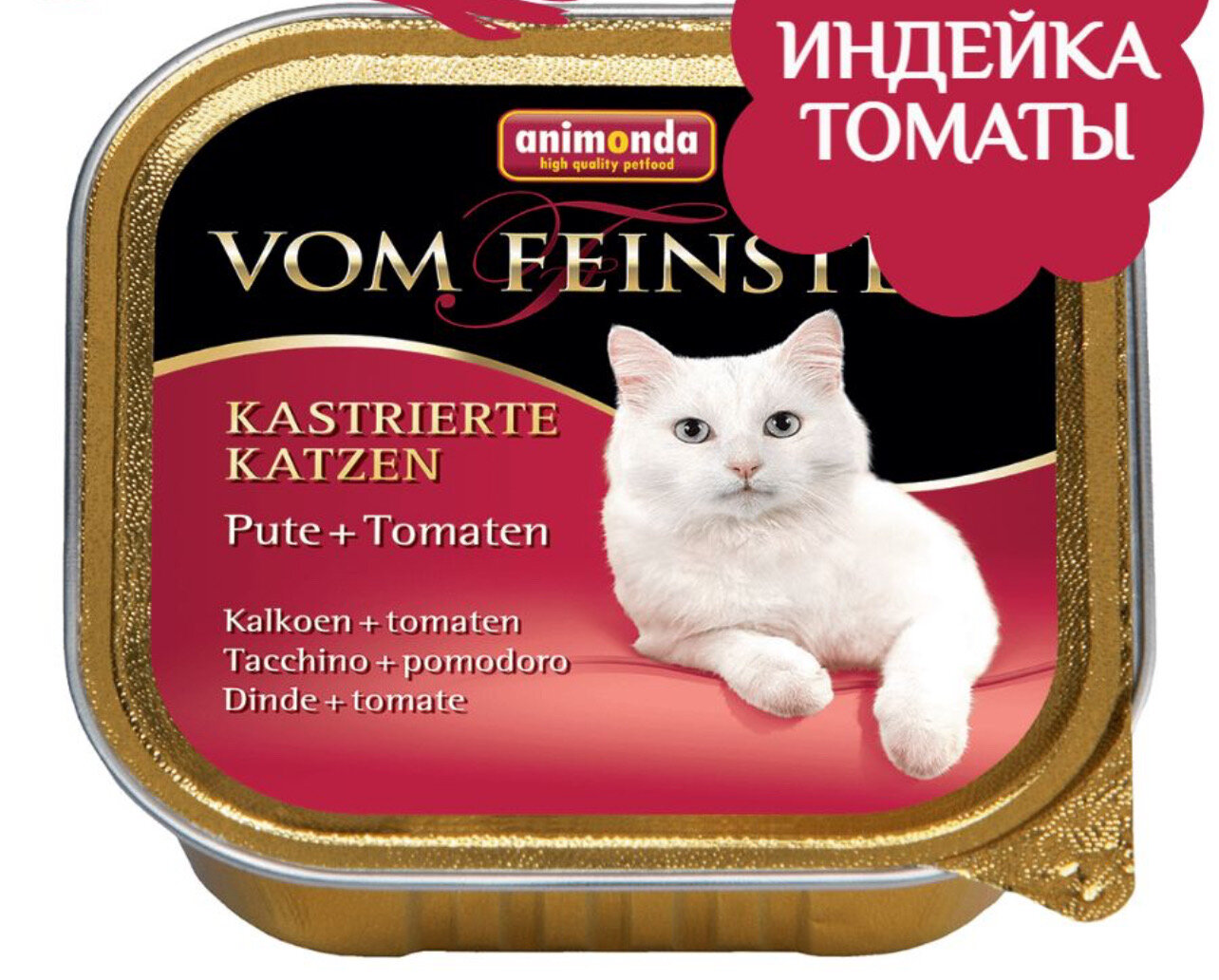 Купить Влажный корм для кошек Animonda Vom Feinsten, с индейкой и помидорами Mildes 32шт.×100 г (паштет) с доставкой по всей России. Влажный корм для кошек Animonda Vom Feinsten, с индейкой и помидорами Mildes 32шт.×100 г (паштет): сравнение цен, характеристики, фото, актуальное наличие и цены.