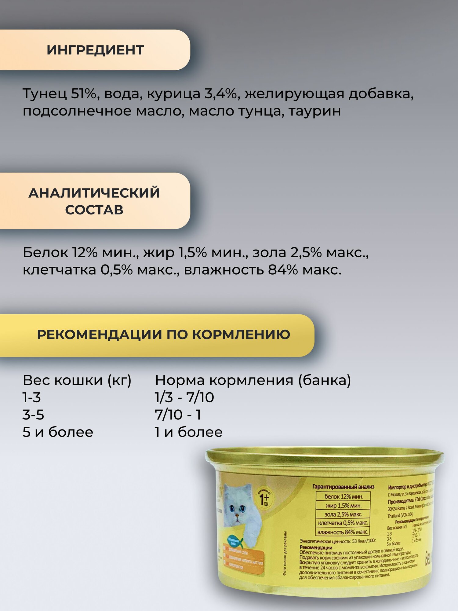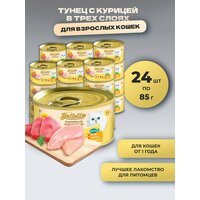 Купить Влажный корм для кошек «Bellotta» Тунец с курицей в трех слоях, консервы 24 штуки по 85г с доставкой по всей России.
