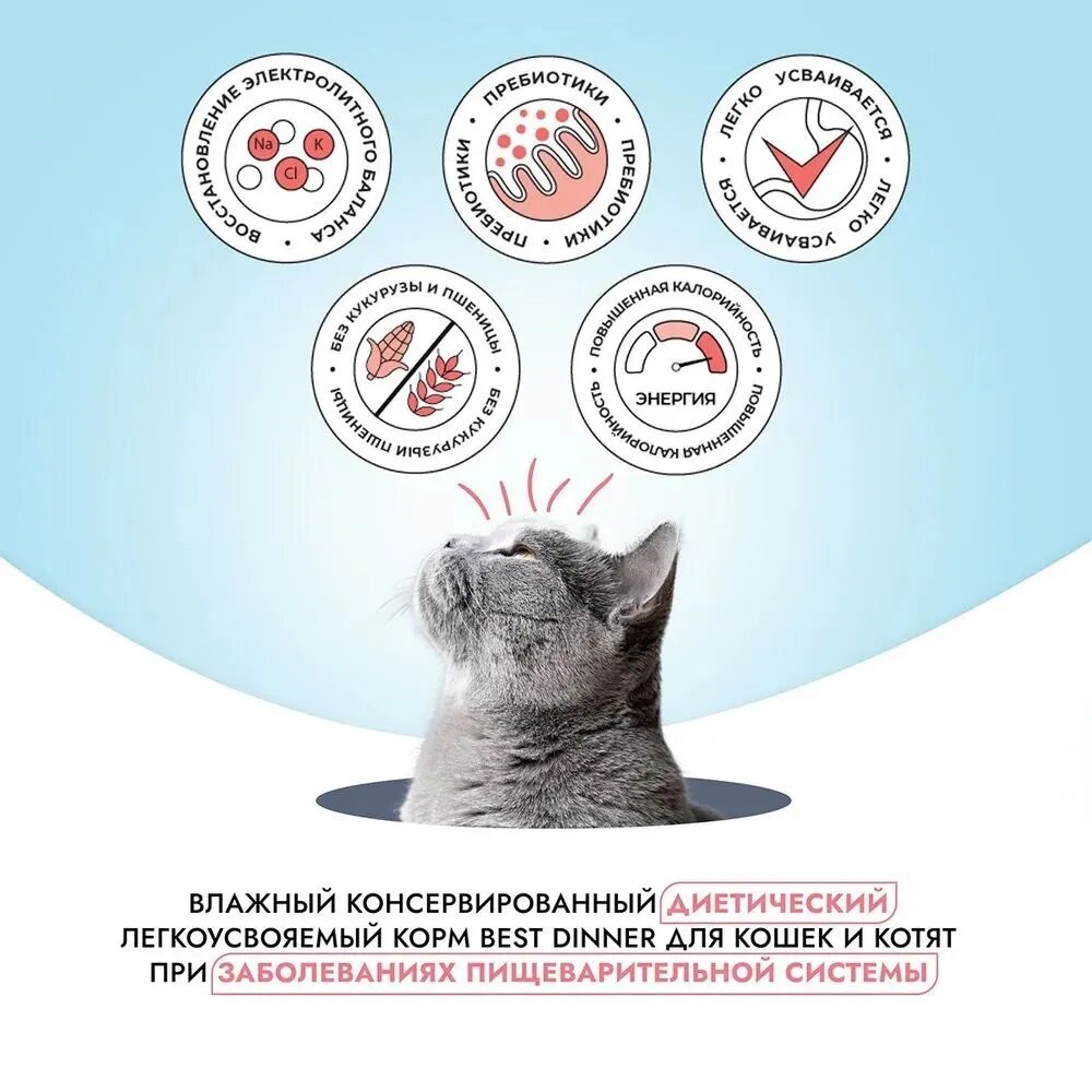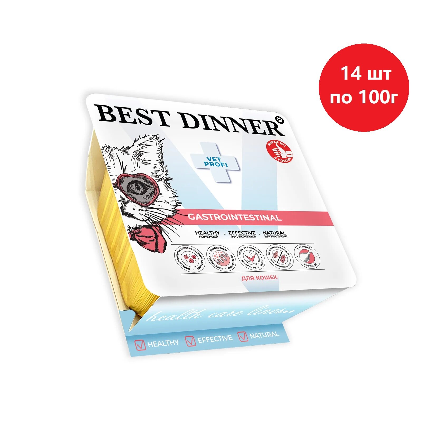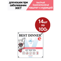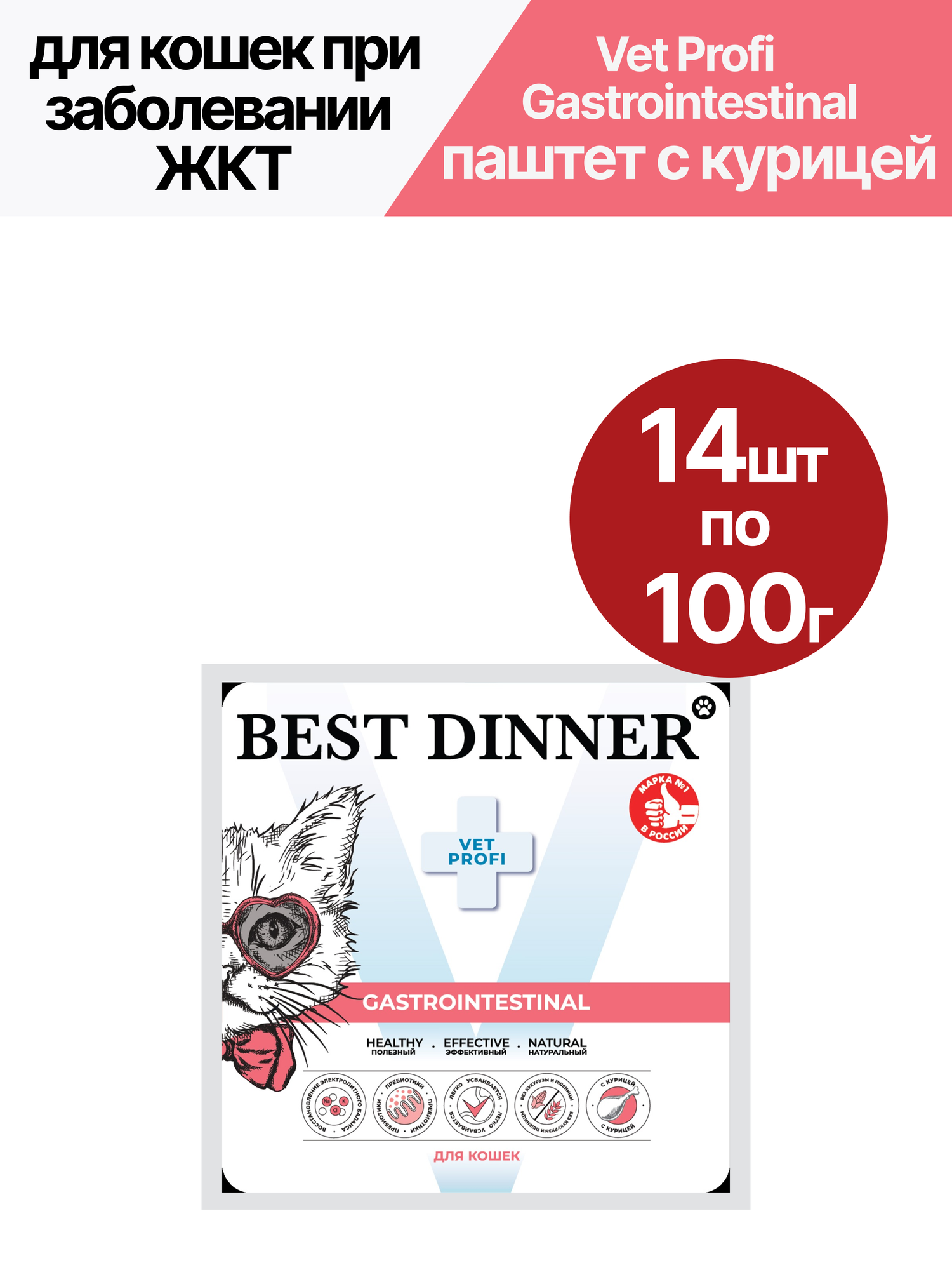 Влажный корм для кошек Best Dinner (Бест Диннер) Vet Profi Gastrointestinal, при заболеваниях ЖКТ, паштет с курицей, 14шт по100 гр: сравнение цен, характеристики, фото, актуальное наличие и цены.