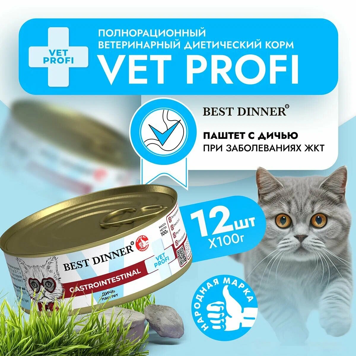 Влажный корм для кошек Best Dinner (Бест Диннер) Vet Profi Gastrointestinal, при заболеваниях ЖКТ, паштет с дичью, 12шт по 100гр: сравнение цен, характеристики, фото, актуальное наличие и цены.