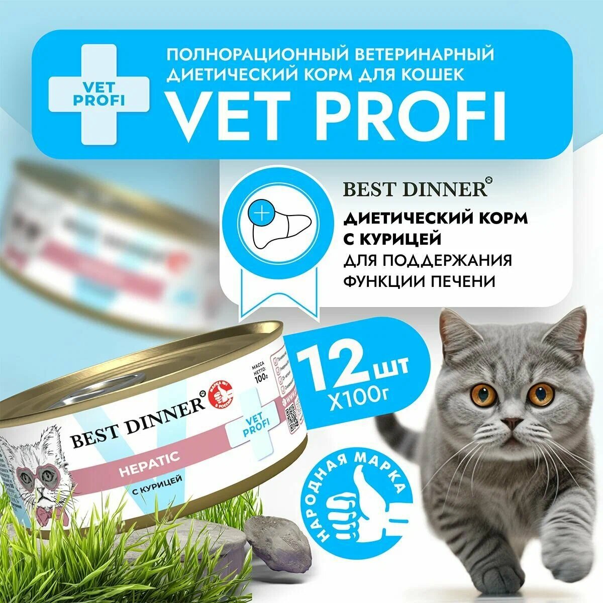 Влажный корм для кошек Best Dinner (Бест Диннер) Vet Profi Hepatic, для поддержания функции печени, паштет с курицей, 12шт по 100гр: сравнение цен, характеристики, фото, актуальное наличие и цены.