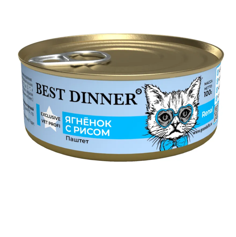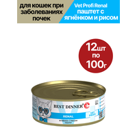 Влажный корм для кошек Best Dinner (Бест Диннер) Vet Profi Renal, при заболеваниях почек, паштет с ягнёнком и рисом, 12шт по 100гр: сравнение цен, характеристики, фото, актуальное наличие и цены.