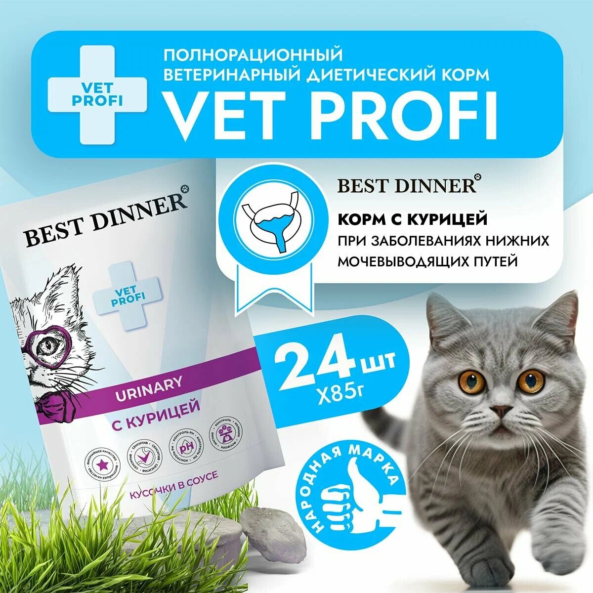 Влажный корм для кошек Best Dinner (Бест Диннер) Vet Profi Urinary, при заболеваниях нижних мочевыводящих путей, с курицей, 24шт по 85гр: сравнение цен, характеристики, фото, актуальное наличие и цены.