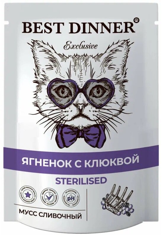 Влажный корм для кошек Best Dinner для стерилизованных, мусс сливочный ягненок с клюквой, 12*85г (12 шт.): сравнение цен, характеристики, фото, актуальное наличие и цены.
