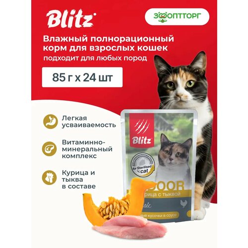 Купить Влажный корм для кошек Blitz Classic Indoor пауч для стерилизованных (кусочки в соусе) Курица и тыква, 85 г х 24 шт. с доставкой по всей России. Влажный корм для кошек Blitz Classic Indoor пауч для стерилизованных (кусочки в соусе) Курица и тыква, 85 г х 24 шт.: сравнение цен, характеристики, фото, актуальное наличие и цены.