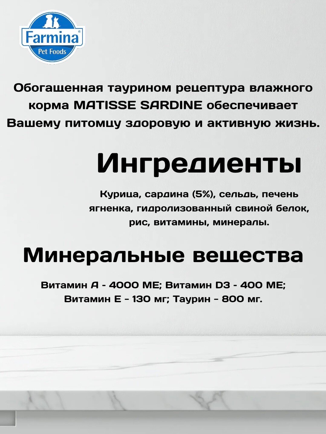 | Консистенция корма | кусочки в бульоне, кусочки в соусе, мусс, паштет, фарш |