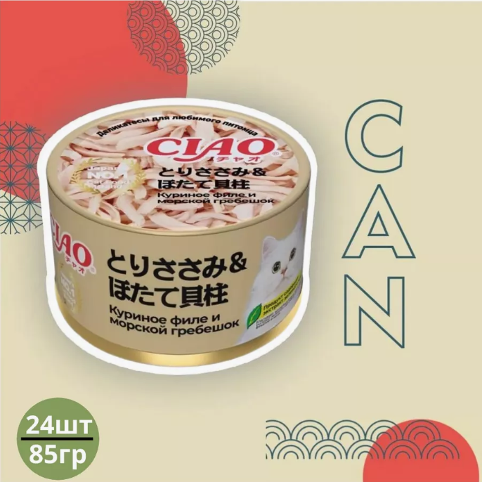 Купить Влажный корм для кошек Inaba Ciao Can Куриное филе с морским гребешком, кусочки в желе, консервы, 24 шт х 85 гр с доставкой по всей России. Влажный корм для кошек Inaba Ciao Can Куриное филе с морским гребешком, кусочки в желе, консервы, 24 шт х 85 гр: сравнение цен, характеристики, фото, актуальное наличие и цены.