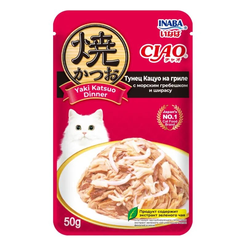 Влажный корм для кошек INABA Yaki Katsuo Dinner Тунец Кацуо на гриле с морским гребешком и ширасу, 6 шт х 50 гр: сравнение цен, характеристики, фото, актуальное наличие и цены.