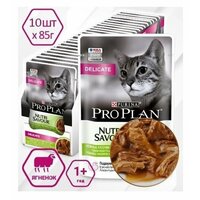 Влажный корм для кошек Purina Pro Plan Nutri Savour Delicate Lamb, при чувствительном пищеварении, ягненок, 10 шт. х 85 г (кусочки в соусе): сравнение цен, характеристики, фото, актуальное наличие и цены.