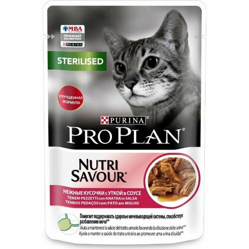 Купить Влажный корм для кошек Purina Pro Plan Nutri Savour Sterilised для стерилизованных кошек и котов (кусочки в соусе), с уткой, 85 г х 26шт с доставкой по всей России. Влажный корм для кошек Purina Pro Plan Nutri Savour Sterilised для стерилизованных кошек и котов (кусочки в соусе), с уткой, 85 г х 26шт: сравнение цен, характеристики, фото, актуальное наличие и цены.