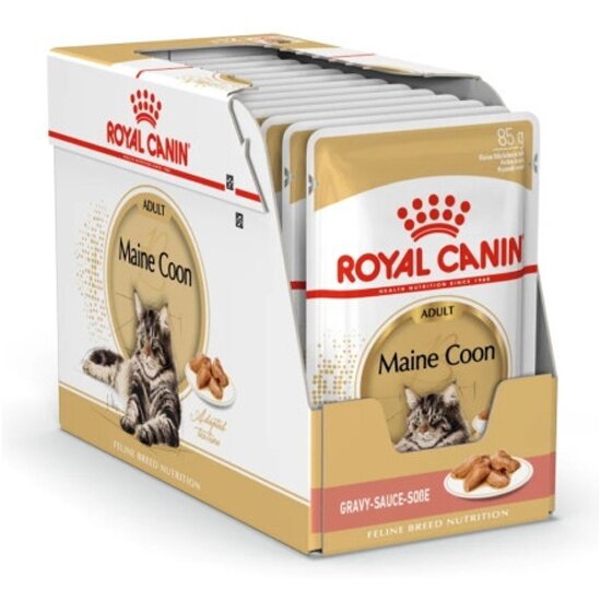 Достаточно высокая калорийность продукта позволяет кошке компенсировать затраты энергии в течение дня. У мейн-кунов густая, умеренно длинная шерсть с великолепным мягким подшерстком. Аминокислоты, витамины и жирные кислоты омега-3 и омега-6, содержащиеся в продукте ROYAL CANIN® Maine Coon Adult в соусе, помогут поддержать здоровье кожи и шерсти вашей кошки.