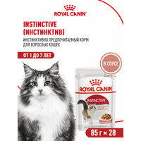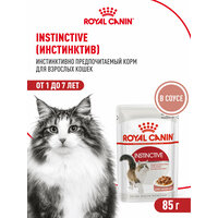 Корм влажный полнорационный для взрослых кошек в возрасте от 1 года до 7 лет INSTINCTIVE (инстинктив), мелкие кусочки в соусе, ROYAL CANIN®, подходящий для взрослых кошек в возрасте от 1 года до 7 лет, специально разработан c учетом потребностей вашей кошки в питательных веществах.