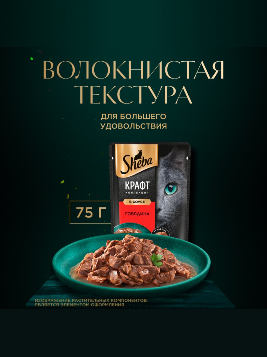 Качественные и тщательно отобранные ингредиенты – это линейка Sheba® Крафт Коллекция. Используя богатый опыт в приготовлении изысканных блюд для кошек, мы создали особенную коллекцию из бережно нарезанных кусочков с говядиной, курицей, ягнёнком или лососем. Позвольте вашей кошке насладиться восхитительным вкусом Sheba® Крафт Коллекция.