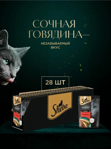 Sheba. Влажный корм для кошек, говядина, паштет в желе 28шт x 75 гр: сравнение цен, характеристики, фото, актуальное наличие и цены.