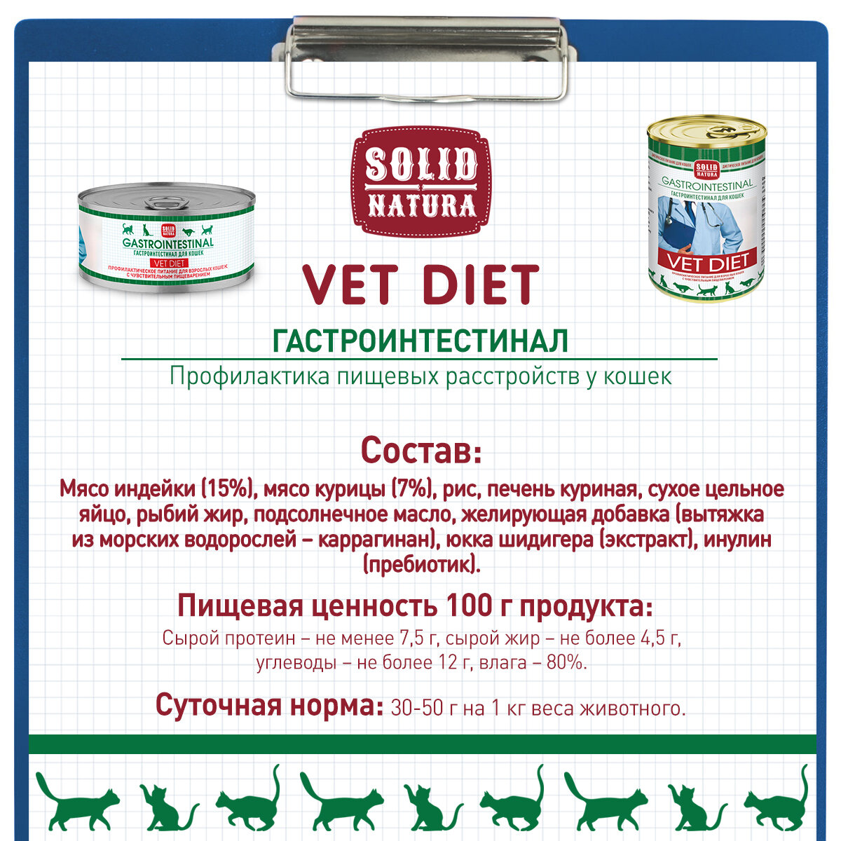 Купить Влажный корм для кошек Solid Natura VET Gastrointestinal при чувствительном пищеварении упаковка 12 шт х 100 г с доставкой по всей России. Влажный корм для кошек Solid Natura VET Gastrointestinal при чувствительном пищеварении упаковка 12 шт х 100 г: сравнение цен, характеристики, фото, актуальное наличие и цены.