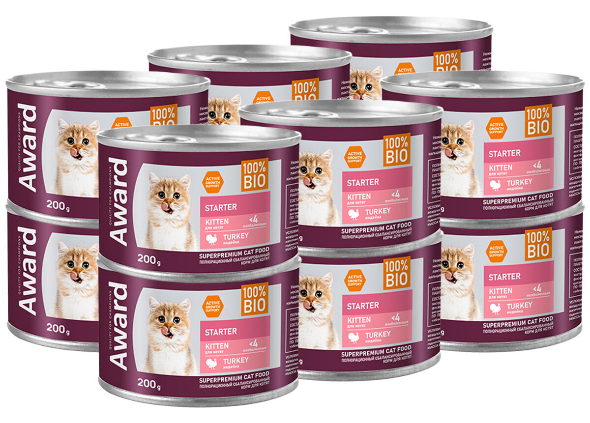 Влажный корм для котят Award Starter Kitten Turkey беременных и кормящих кошек, с индейкой, в консервах - 200 г х 12 шт