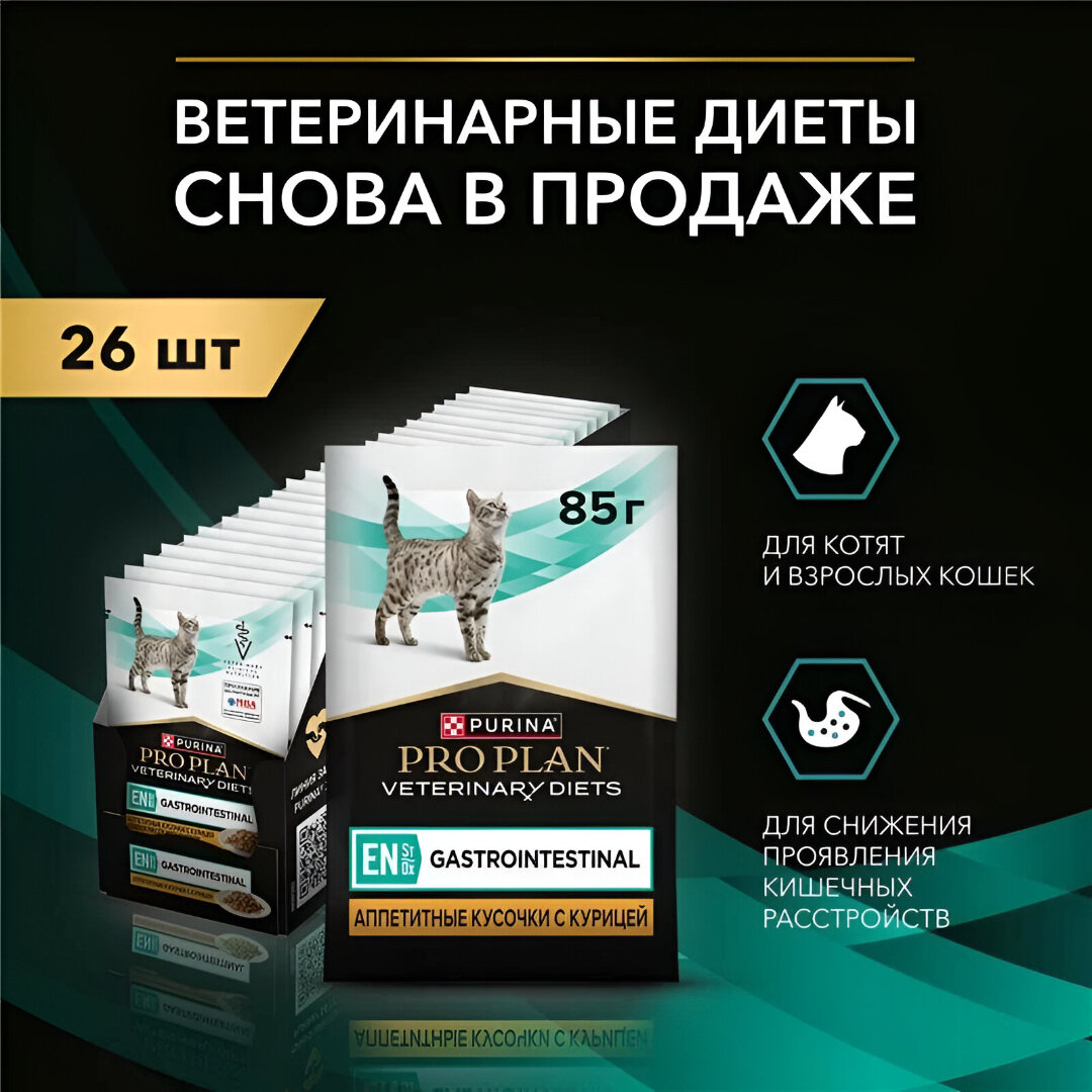 Влажный корм PRO PLAN® VETERINARY DIETS Gastrointestinal для кошек при расстройствах пищеварения с курицей, 85 г х 26 шт: сравнение цен, характеристики, фото, актуальное наличие и цены.