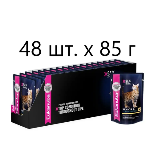 Влажный корм для пожилых кошек Eukanuba Top condition Senior 7+, c курицей, 48 шт. х 85 г (кусочки в соусе): сравнение цен, характеристики, фото, актуальное наличие и цены.