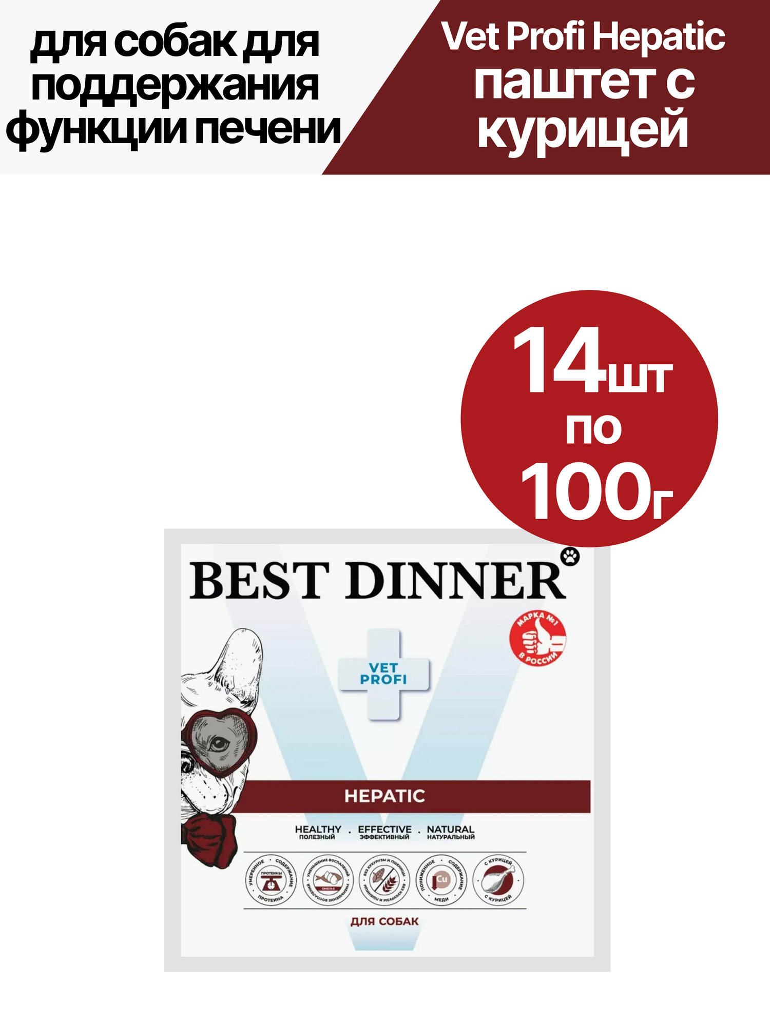 Влажный корм для собак Best Dinner (Бест Диннер) Vet Profi Hepatic, для поддержания функции печени, паштет с курицей, 14шт по 100гр: сравнение цен, характеристики, фото, актуальное наличие и цены.