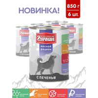 Влажный корм для собак Четвероногий гурман Мясной рацион, с Печенью, 850г х 6шт