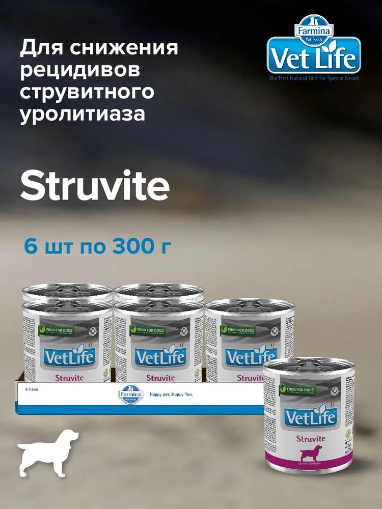 Влажный корм для собак Farmina Vet Life Dog Struvite, при мочекаменной болезни, 6 шт х 300 гр: сравнение цен, характеристики, фото, актуальное наличие и цены.