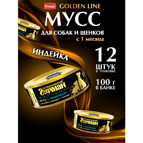 Четвероногий гурман “Golden line Мусс” для собак и щенков с 1 месяца – это влажный корм суперпремиум класса, в составе которого только мясо и сливочный соус. Такое сочетание придает корму неповторимый вкус и привлекательную кремовую текстуру. Благодаря этому консервы хорошо поедаются и легко усваиваются, а при добавлении их в другой корм – улучшают поедаемость и усвояемость всего рациона. Все ингредиенты категории Human grade. Корм полностью натуральный – в его составе нет искусственных красителей, ароматизаторов, усилителей вкуса и ГМО. Уникальная рецептура “Golden line Мусс” разработана для прикорма самых маленьких щенков от 1 месяца. Благодаря мягкой консистенции щенки могут просто слизывать корм. Также мусс рекомендуется добавлять в пищу беременных и кормящих собак, так как он увеличивает поедаемость и усвояемость всего рациона, что способствует более обильному выделению молока. Подсолнечное масло в составе является источником незаменимых жирных кислот, которые особенно важны для щенков и лактирующих собак. Помимо этого, муссы можно давать и взрослым животным, например, собакам миниатюрных пород, привередливым питомцам или собакам с проблемным пищеварением и при отсутствии зубов. Состав: индейка, соус сливочный (сливки, вода, мука пшеничная, масло подсолнечное, стабилизатор соуса, соль). Питательная ценность (в 100 г продукта): протеин – 6 г, жир – 9,1 г, клетчатка – 0,5 г, зола – 2 г, влага – 85 г. Минеральные вещества (в 100 г продукта): P – 115 мг, Ca – 17 мг, Na – 141 мг, Cl – 182 мг, K – 202 мг, Mg – 12 мг, Fe – 0,4 мг, Cu – 28 мкг, Co – 0,2 мкг, Mn – 50 мкг, I – 0,1 мкг. Витамины (в 100 г продукта): Е – 1,15 МЕ, В1 – 0,03 мг, В2 – 0,08 мг, В3 – 1,5 мг, В5 – 0,3 мг, В6 – 0,1 мг. Энергетическая ценность (в 100 г продукта): 115 ккал Рекомендации по кормлению: 50 – 70 г на 1 кг веса взрослого животного и 90 – 220 г на 1 кг веса щенка. Суточную норму разделить на два приема кормления. Употреблять при комнатной температуре.