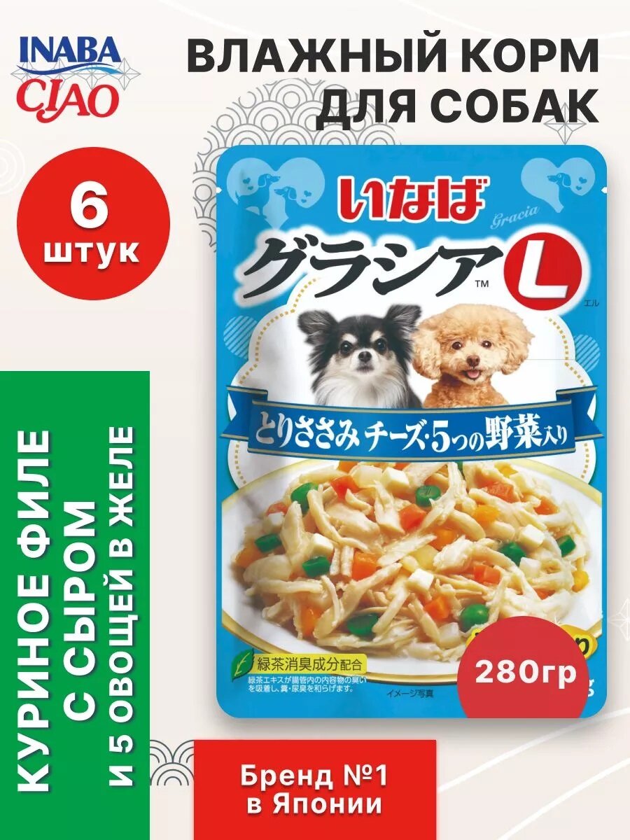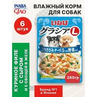 Купить Влажный корм для собак INABA Gracia L в желе, куриное филе с сыром и 5 видами овощей 6шт х 280г с доставкой по всей России.