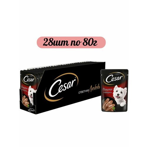 Влажный корм Cesar для взрослых собак, паштет с говядиной, 80г.
