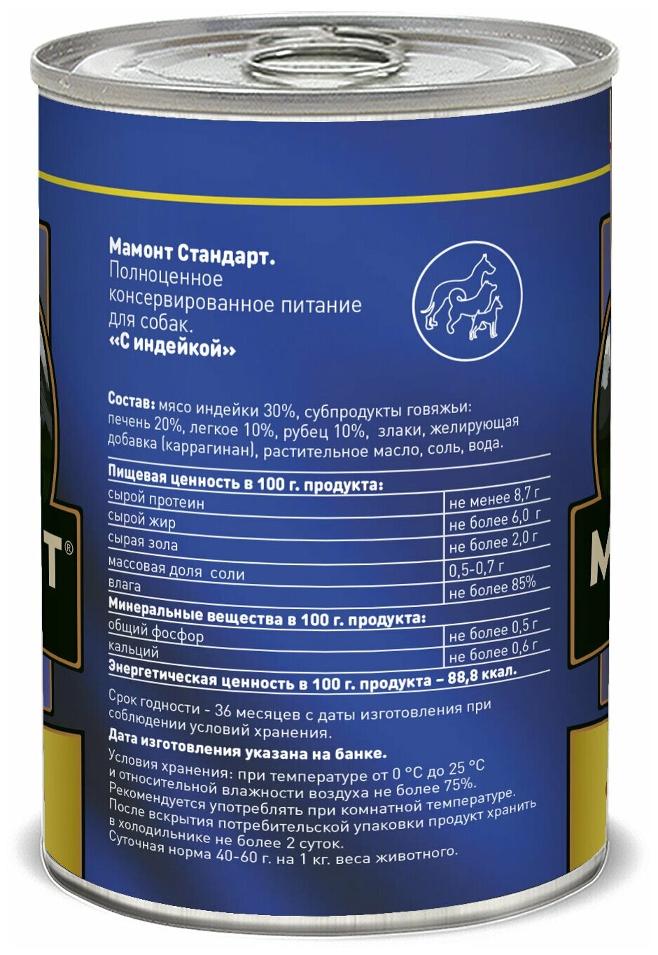 Влажный корм для собак с индейкой, Мамонт Стандарт, упаковка 1 шт х 970 г: сравнение цен, характеристики, фото, актуальное наличие и цены.