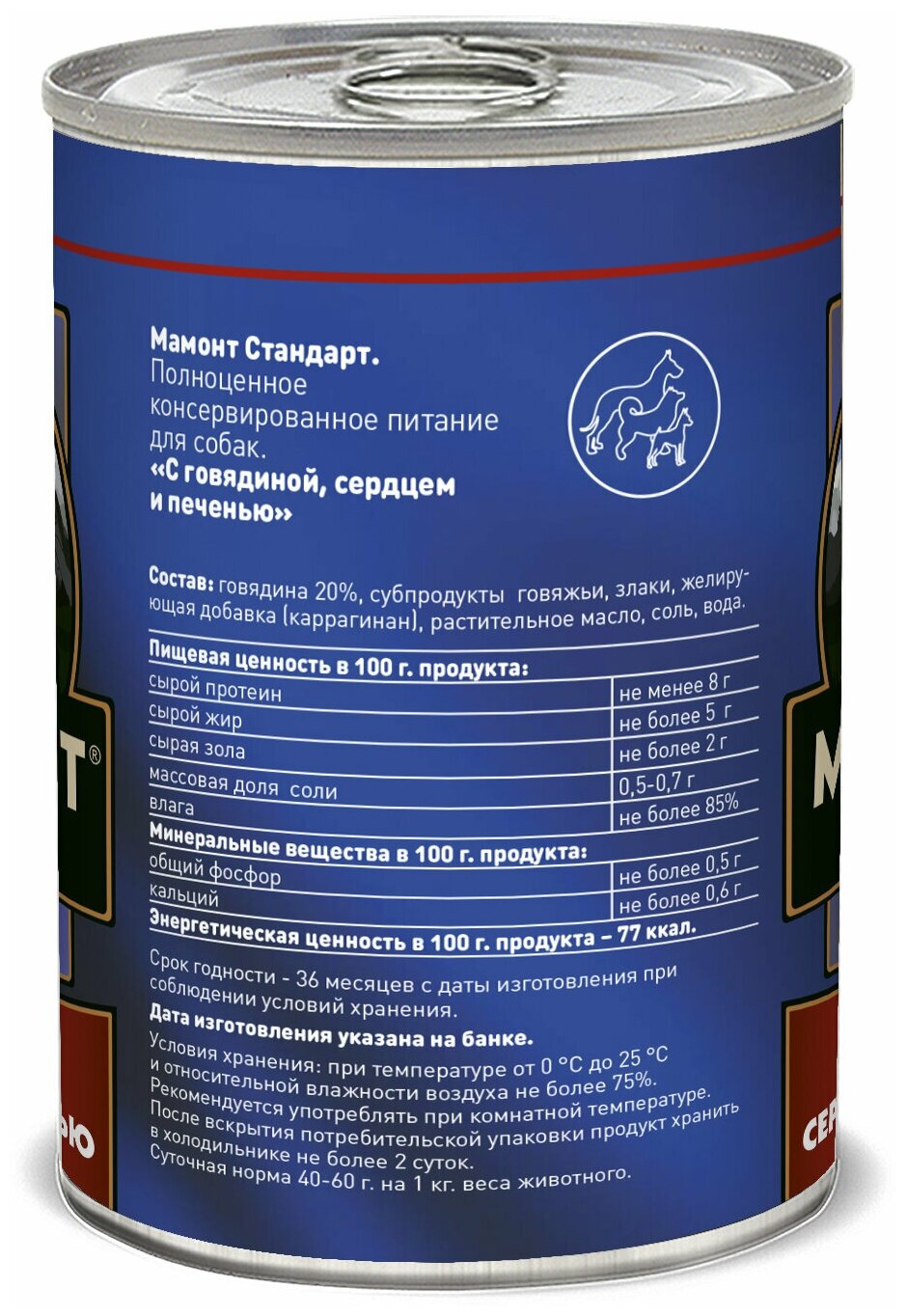 Влажный корм для собак с говядиной, Мамонт Стандарт, упаковка 3 шт х 970 г