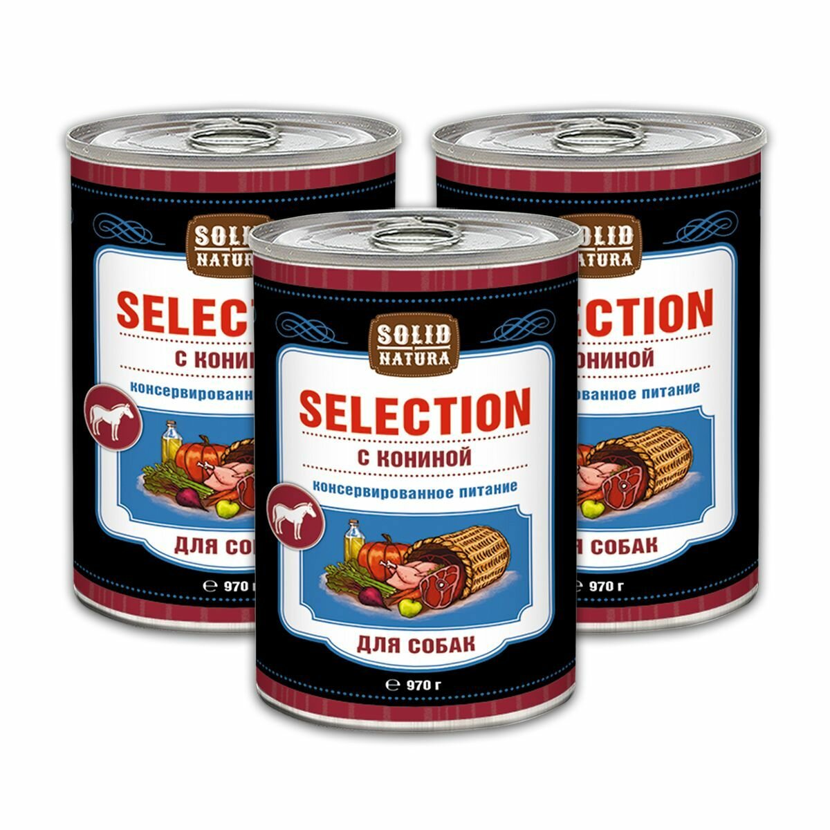 Влажный корм для собак Solid Natura Selection Конина, упаковка 3 шт х 970 г