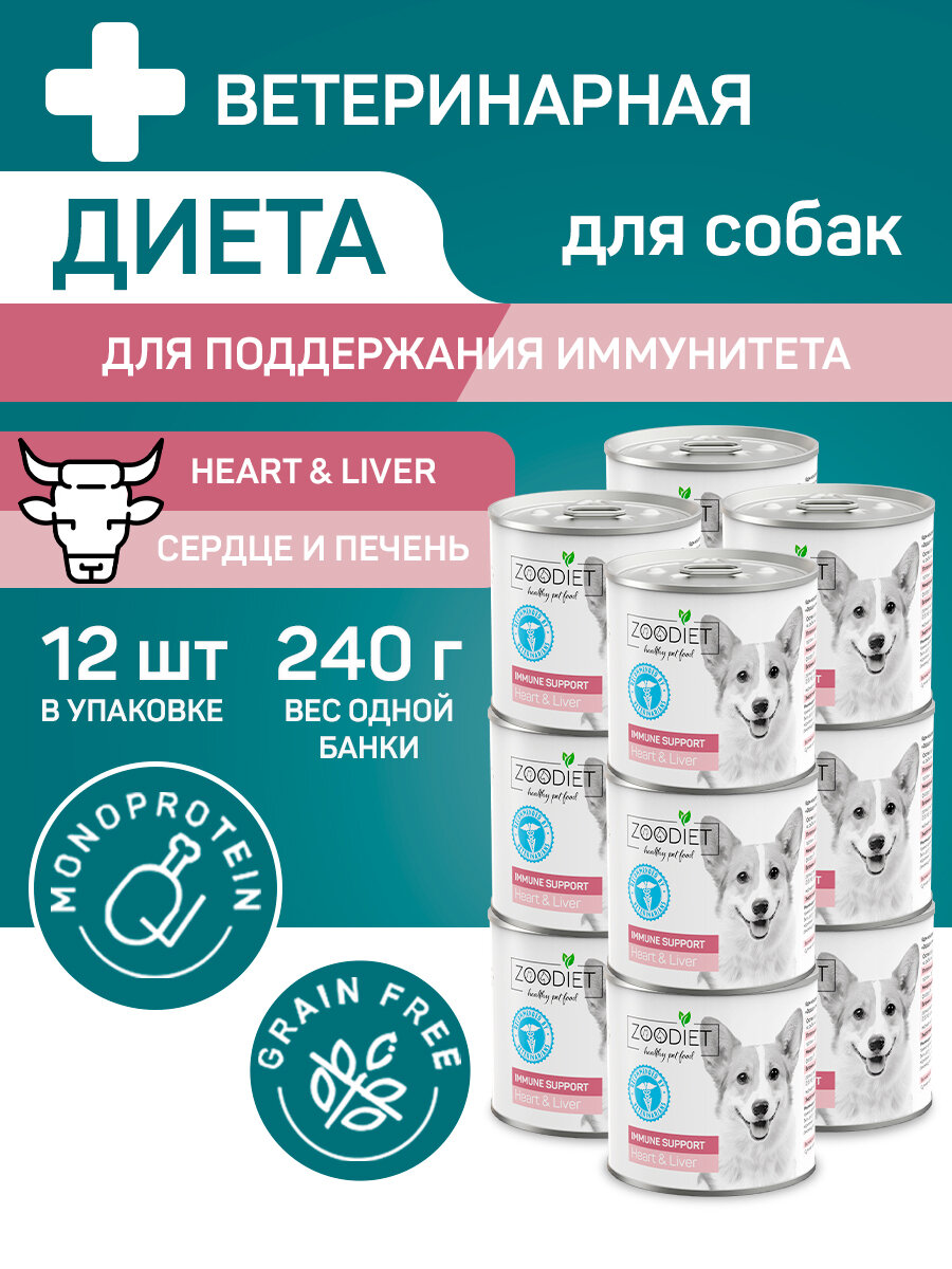 Влажный корм для собак, Zoodiet Multi-Benefit Heart&Liver/ Сердце и печень, 12шт по 240г: сравнение цен, характеристики, фото, актуальное наличие и цены.