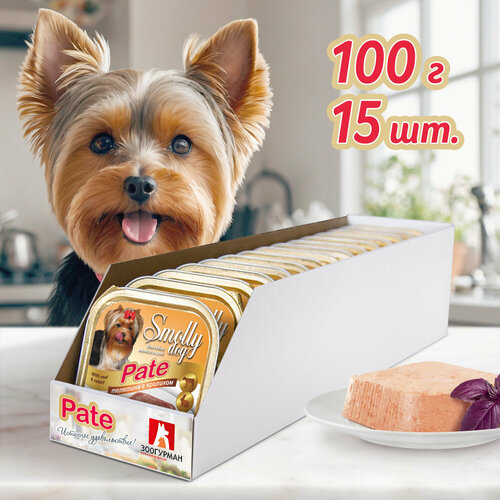 Серия высококачественных натуральных кормов суперпремиум класса для собак мелких и миниатюрных пород, живущих в городских условиях. SMOLLY DOG PATE является продолжением основной линейки SMOLLY DOG, обладает нежной текстурой, состав и консистенция корма разработаны с учетом особенностей мелких и миниатюрных пород. Оптимально сбалансированный рацион и натуральные отборные ингредиенты. Изысканное блюдо для настоящих гурманов! Состав: телятина, рубец, кролик, субпродукты, растительное масло, мука, вода, витаминно-минеральный комплекс. Пищевая ценность в 100г продукта: сырой протеин – 11,0г, сырой жир – 5,0г, углеводы – 4,0г, клетчатка – 0,2г, зола – 2,0г, влага – 70%. Энергетическая ценность: 105кКал Суточная норма: 30-40г на 1кг веса животного. Перед кормлением рекомендуется довести продукт до комнатной температуры. У животного всегда должен быть доступ к свежей питьевой воде.