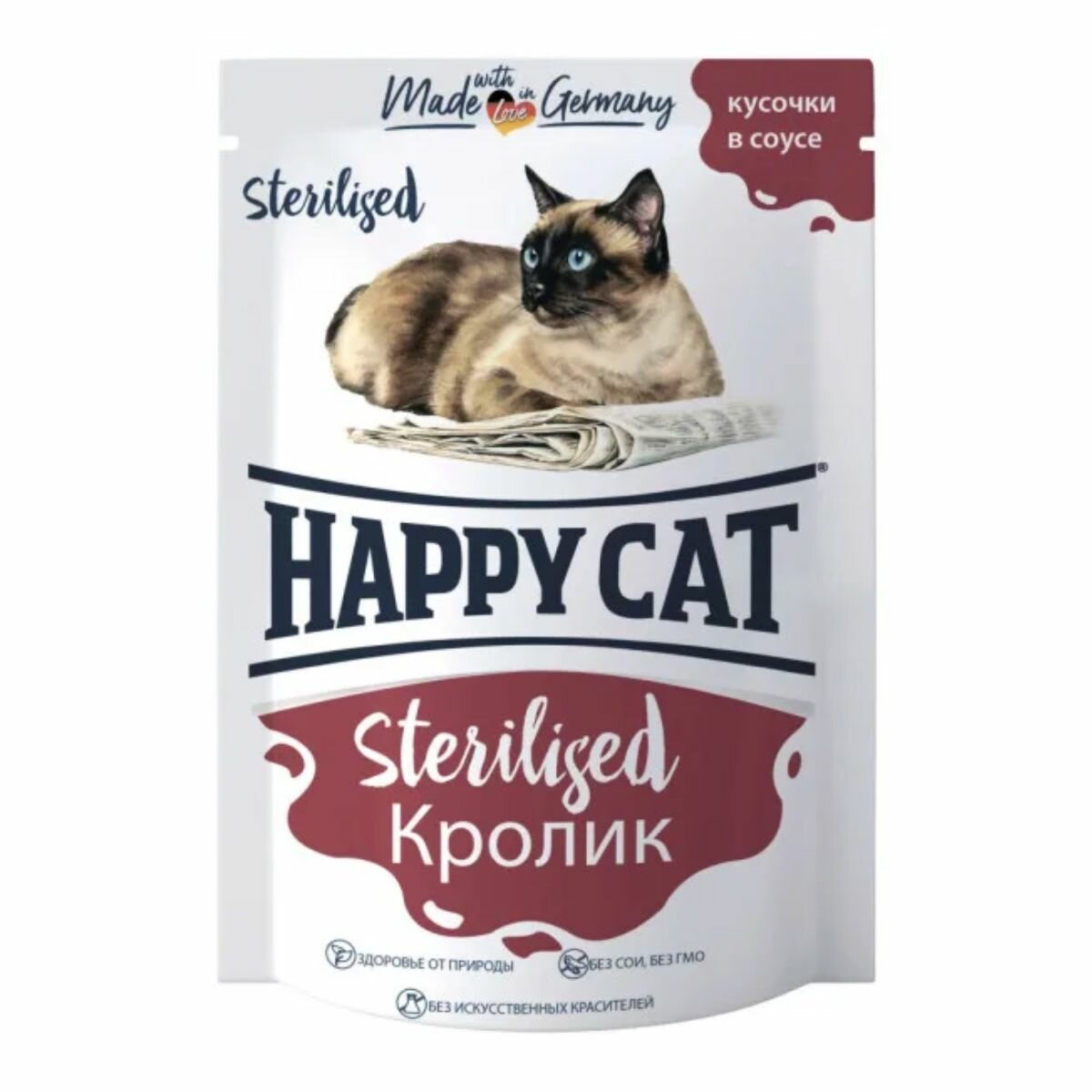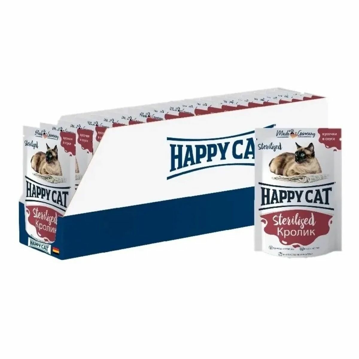 Happy Cat Влажный корм для стерилизованных кошек, кролик , кусочки в соусе 24 шт*100 г: сравнение цен, характеристики, фото, актуальное наличие и цены.