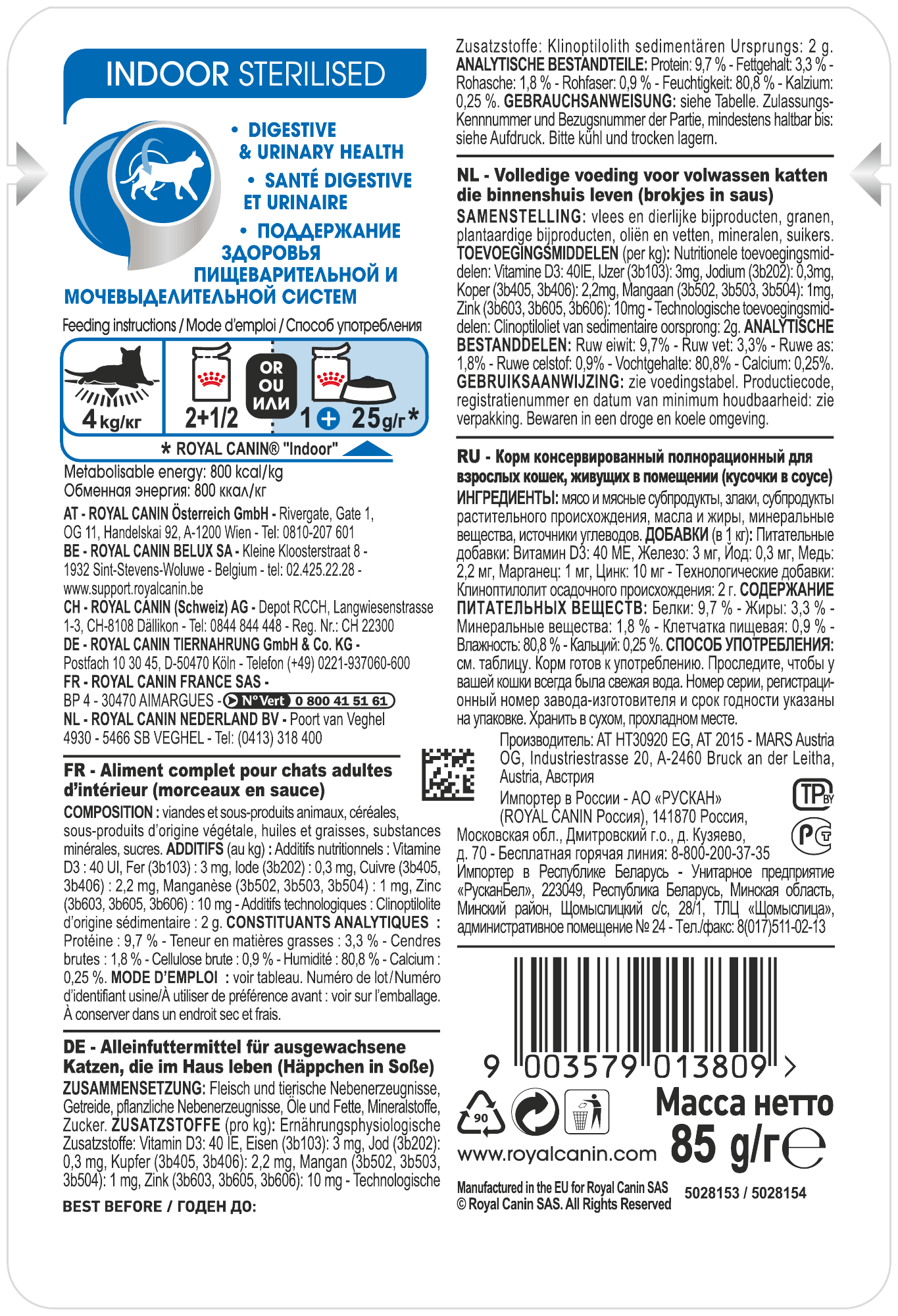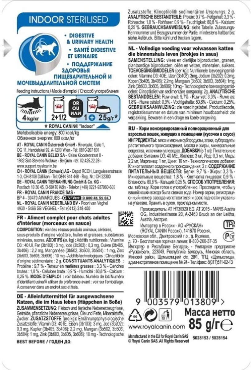 Купить Влажный корм для стерилизованных кошек Royal Canin Indor Sterilised живущих в помещении, 28 шт. х 85 г (кусочки в соусе) с доставкой по всей России. Влажный корм для стерилизованных кошек Royal Canin Indor Sterilised живущих в помещении, 28 шт. х 85 г (кусочки в соусе): сравнение цен, характеристики, фото, актуальное наличие и цены.