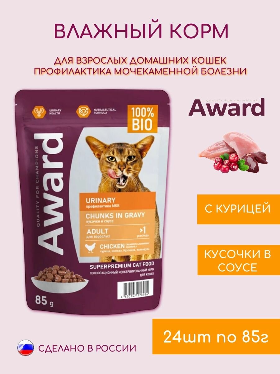 Влажный корм для взрослых кошек для профилактики МКБ Award Urinary 85г*24шт Кусочки в соусе с курицей: сравнение цен, характеристики, фото, актуальное наличие и цены.