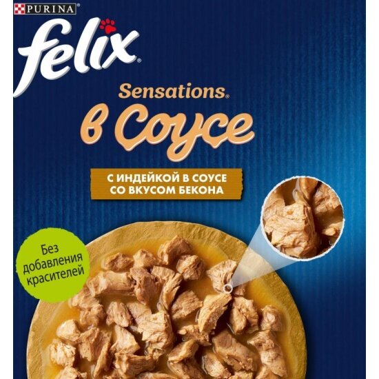 Влажный корм для взрослых кошек Felix Sensations индейка в соусе со вкусом бекона 75г x 26шт: сравнение цен, характеристики, фото, актуальное наличие и цены.