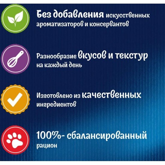 | Консистенция корма | кусочки в желе, кусочки в соусе |