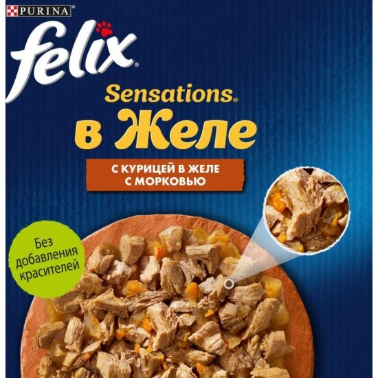 Влажный корм для взрослых кошек Felix Sensations курица в желе с морковью 26шт.*75г: сравнение цен, характеристики, фото, актуальное наличие и цены.