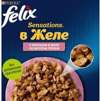 Корм влажный Felix Sensations для взрослых кошек, с лососем в желе с добавлением трески 26шт.*75г: сравнение цен, характеристики, фото, актуальное наличие и цены.