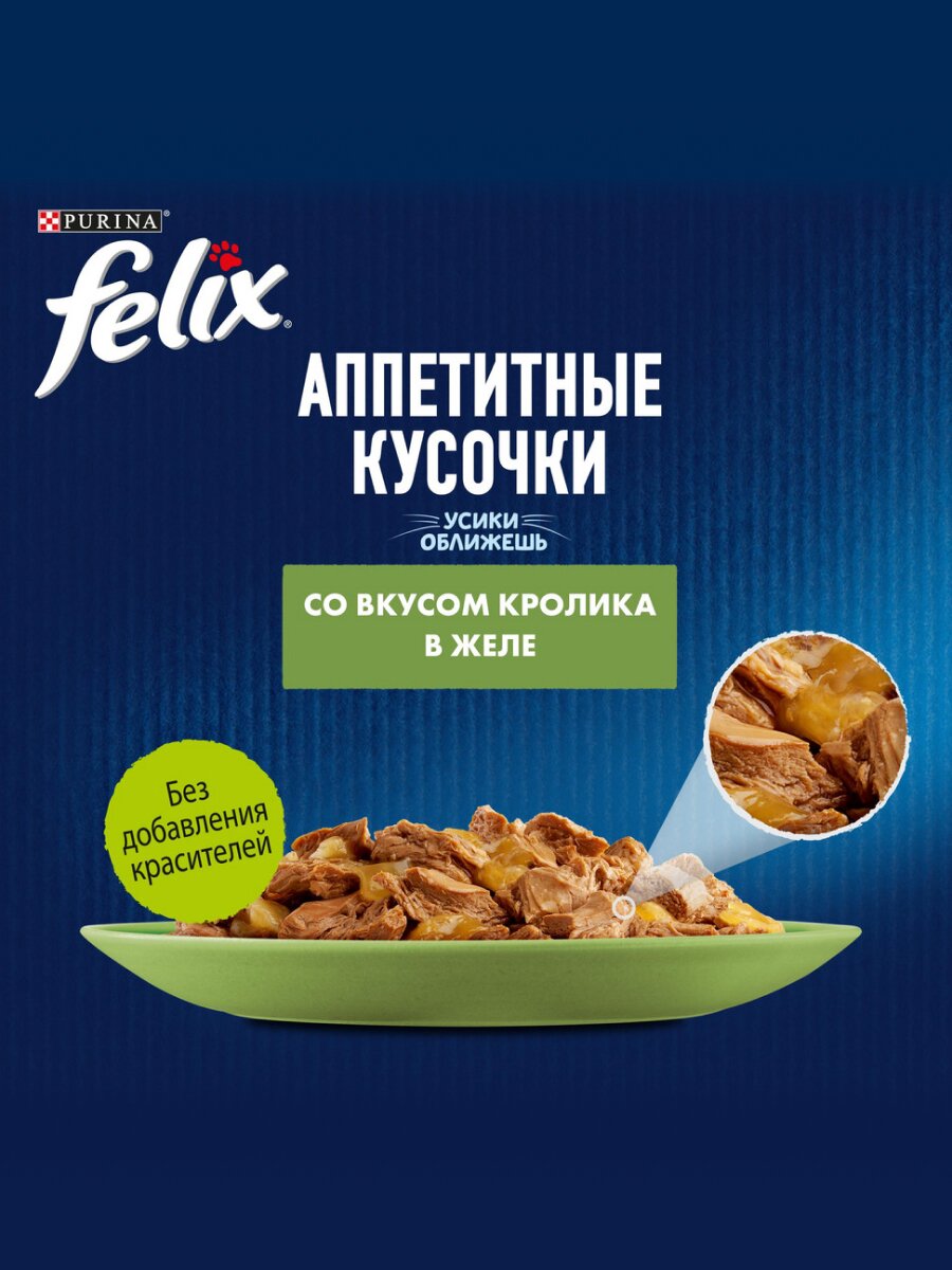 Купить Felix Аппетитные кусочки пауч для кошек (кусочки в желе) Кролик, 75 г. х 52 шт с доставкой по всей России. Felix Аппетитные кусочки пауч для кошек (кусочки в желе) Кролик, 75 г. х 52 шт: сравнение цен, характеристики, фото, актуальное наличие и цены.