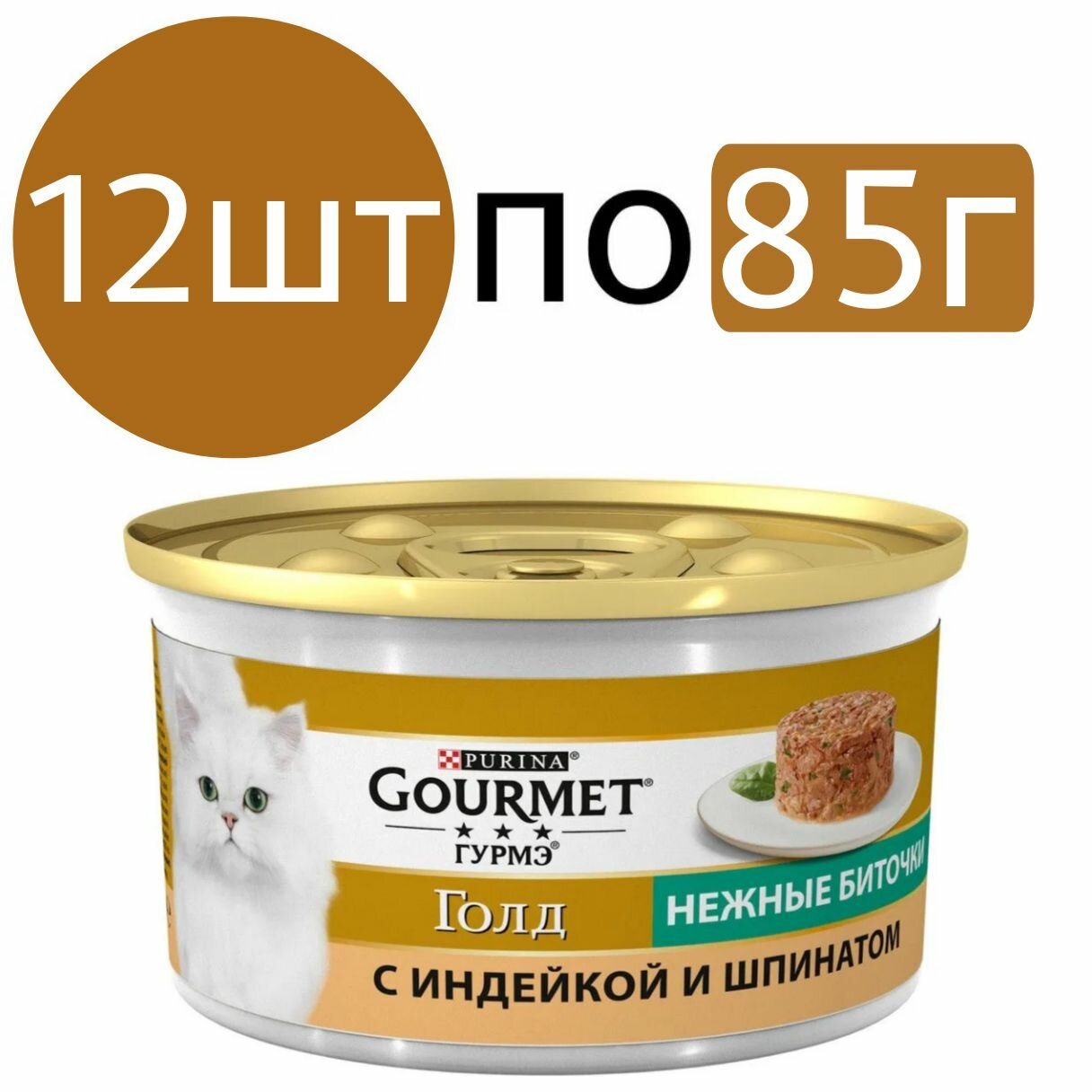 Влажный корм Gourmet Gold, для кошек, нежные биточки со вкусом индейки и шпинатов (12шт по 85г): сравнение цен, характеристики, фото, актуальное наличие и цены.
