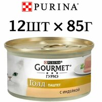 Влажный корм Gourmet Gold, для кошек, паштет со вкусом индейки (12шт по 85г)